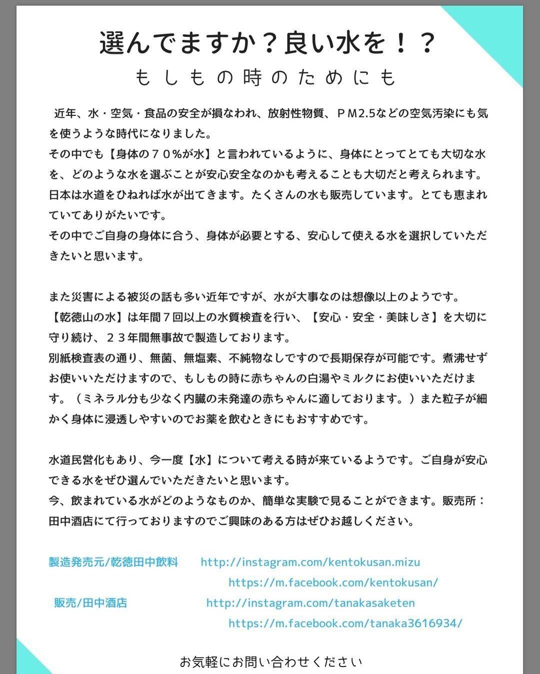 ※乾徳山の水は水質検査を徹底した品質管理を行っています。